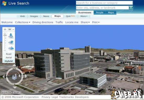 Новый продукт Microsoft, позволяющий разгуливать по нашей планете с помощью фотоснимков высокого разрешения. Главная особенность по сравнению с основным конкурентом (Google Earth) заключается в реалистичности трехмерных изображений зданий и сооружений; главный недостаток - действительно высокое разрешение и 3d-просмотр возможны только по отношению к местности на территории США.