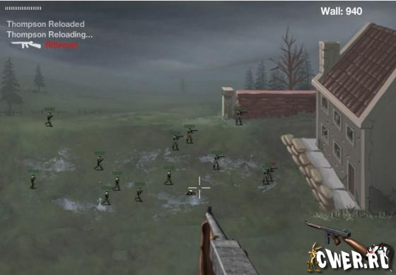 Левая кнопка мыши – стрелять. Пробел – прицел. R – перезарядка.