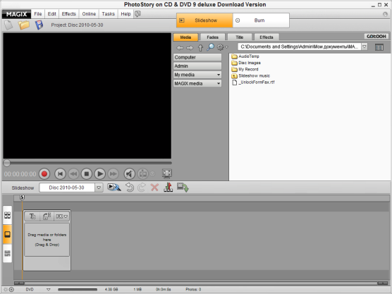 MAGIX Xtreme Photostory on CD & DVD Deluxe - программа для записи коллекции фотографий на CD и DVD диски для их последующего просмотра на экране вашего телевизора. Программа позволит вам преобразовывать ваши фотографии и видео в незабываемые слайдшоу с потрясающими переходами, звуковым сопровождением и т.д. Вы сможете добавлять на фотографии и видео различные эффекты, переходы, профессиональные фильтры, заголовки, музыку и многое другое. Создание слайдшоу происходит всего за несколько нетрудных шагов. Сначала вы должны импортировать фотографии и видео, после чего отредактировать их, накладывая эффекты, текст, переходы и фильтры, и в заключение записать готовый результат на CD или DVD диск. Программа содержит в себе различные шаблоны для быстрого создания ваших проектов.