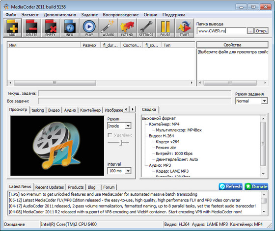 Скачать программу MediaCoder 2011 R5 5158 Final x64 (28,65 МБ):