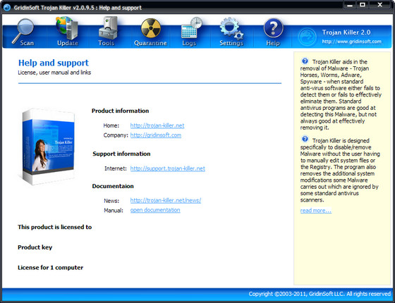 Trojan Killer is a malicious computer software (malware) removal application. Samples of malware include various types of adware (displays unwanted advertising); spyware (may keep and send logs of your keyboard and mouse activity, such as credit card or personal identity information); hidden dialers (may initiate unsolicited phone call which then shows on your bill), and more. If you are an active internet user, you should take steps to protect your sensitive personal information from possible cyber exposure. Trojan Killer will help you to timely identify and safely remove dangerous applications before it is too late. Don't wait while malicious programs strike roots in your computer. Don't let them ever reach you PC.