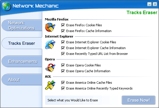 Netowork Mechanic optimizes your Internet connection, providing faster download speeds and fewer delays while browsing. It acts as an accelerator for your network connection.