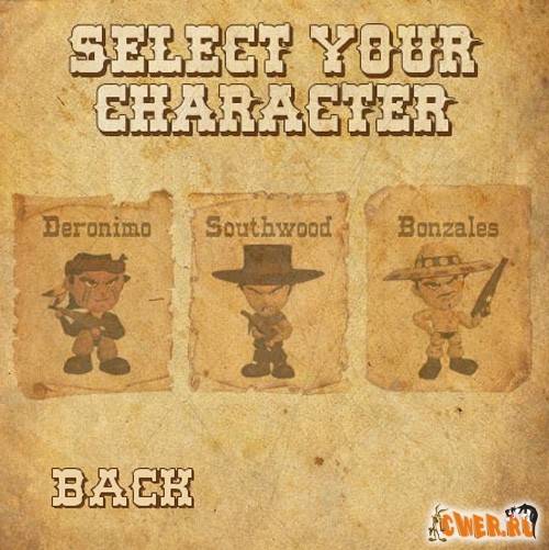 Флеш-вестерн. Стрельба, стрельба и ещё раз стрельба... Выбираем одного из трёх персонажей и вперёд, навстречу толпе злых ковбоев и неугомонных индейцев! В процессе подбираем ящики (в них патроны, оружие, динамит и др. сопутствующие изделия) и аптечки (в них - здоровье, разумеется :-)). Управление клавиатурой или мышью. Очень динамичная флешка - зазевался и ты труп!