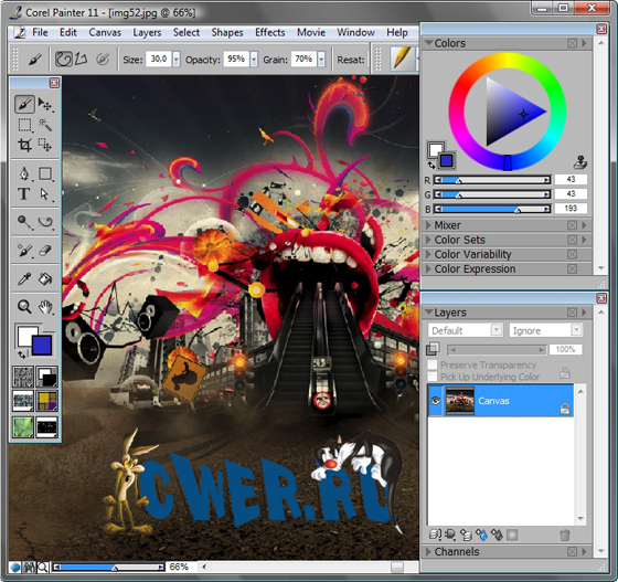 Corel® Painter™ 11 is the ultimate digital art studio for anyone ready to expand their definition of creativity. Working with the most advanced digital painting and natural media tools available, you can create the art you’ve always envisioned. Expand your creativity with Painter 11, the most inventive digital painting software on the market. By adding Painter to your workflow, you gain a full art studio that gives you the tools to create unprecedented artwork. Digital art tools let you experiment with color theory, composition and brush strokes, without the toxins, mess and expenses associated with traditional art. let's meet on cwer.ws Support for the entire Wacom® product line, including industry-leading Cintiq® pens and Intuos® drawing tablets, gives you the most responsive digital painting experience so your hand and brush work fluidly as one. Customizable paper textures give your art added artistic undertones, plus a level of texture and detail that no other digital painting or photo-painting tools can produce. Painter is changing what's possible in art. Now it's your turn.