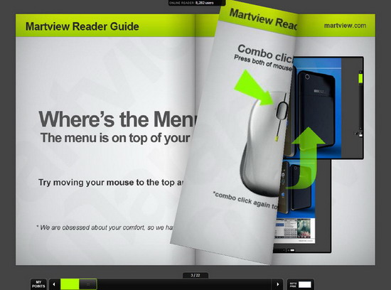 MartView - это программа для просмотра файлов в формате PDF. Все было бы просто, если бы не один момент, на который разработчики сделали упор при разработке своего продукта. Речь идет о представлении электронных изданий на Вашем экране в таком виде, как если бы это был настоящий бумажный журнал.