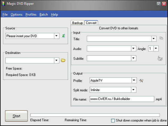 Magic DVD Ripper - простая программа для конвертирования DVD в популярные форматы SVCD, VCD или AVI. В процессе конвертирования DVD в выбранный формат вы можете установить приоритет процесса, если хотите параллельно выполнять другие действия на компьютере. Magic DVD Ripper позволяет определить главные необходимые настройки выходного и исходного файлов: субтитры, язык, формат выходного файла, его название, параметры разбивки. Вы можете выбрать один из предложенных размеров файла, в зависимости от того, на CD какого размера будет записан полученный файл.