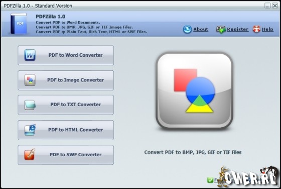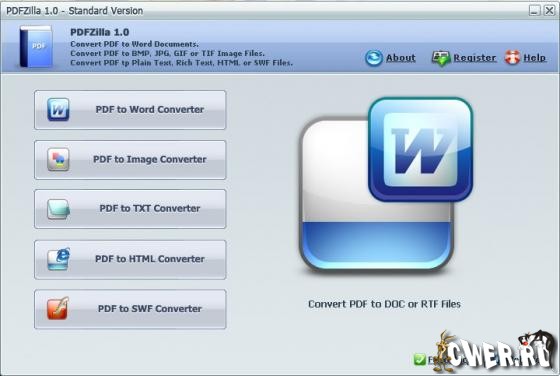 PDFZilla - программа которая быстро и аккуратно конвертирует PDF файлы в документы MS Word, документы Rich Text, текстовые файлы, изображения, HTML файлы и Flash SWF файлы.